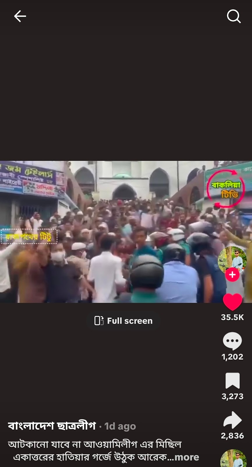 আওয়ামী লীগের মিছিল আটকানো যাবে না দাবিতে একটি ভিডিও সম্প্রতি সামাজিক যোগাযোগ মাধ্যম টিকটকে প্রচার করা হয়। ভিডিওটির অডিওতে আওয়ামী লীগের পক্ষে একাধিক স্লোগান শোনা যায়।
