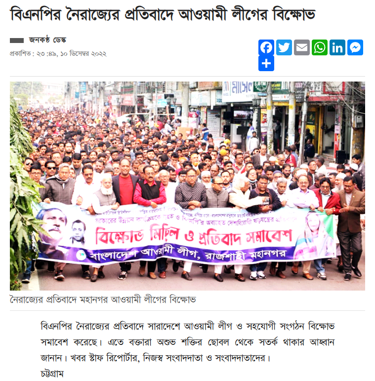 এছাড়া, বিষয়টি নিয়ে সে সময় দৈনিক জনকণ্ঠ একটি প্রতিবেদন প্রকাশ করে, যেখানে উক্ত ছবিটিও ব্যবহৃত হয়েছিল। অর্থাৎ, রাজশাহীতে আওয়ামী লীগের মিছিলের ছবিটি পুরোনো একটি ঘটনার ছবি।